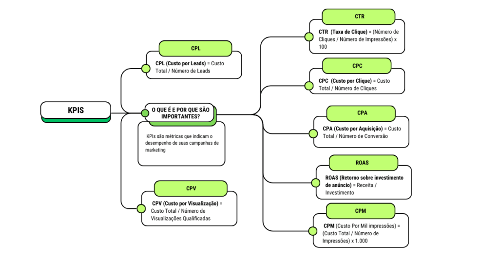 KPIs são métricas que indicam o desempenho de suas campanhas de marketing. Eles te ajudam a entender o que está funcionando, o que precisa ser ajustado e se você está alcançando seus objetivos. Ao acompanhar os KPIs certos, você pode tomar decisões mais assertivas e maximizar o retorno sobre seus investimentos em mídia.