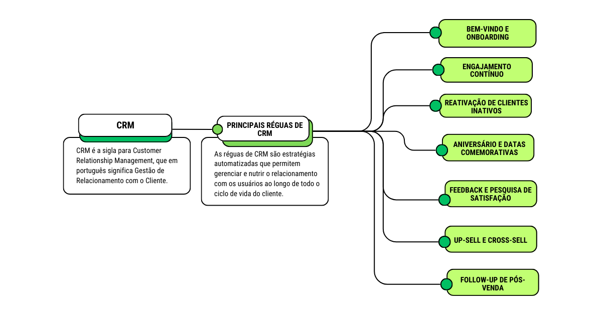 As réguas de CRM são estratégias automatizadas que permitem gerenciar e nutrir o relacionamento com os usuários ao longo de todo o ciclo de vida do cliente. Elas garantem que os clientes recebam a comunicação certa, no momento certo, com o conteúdo mais relevante possível.